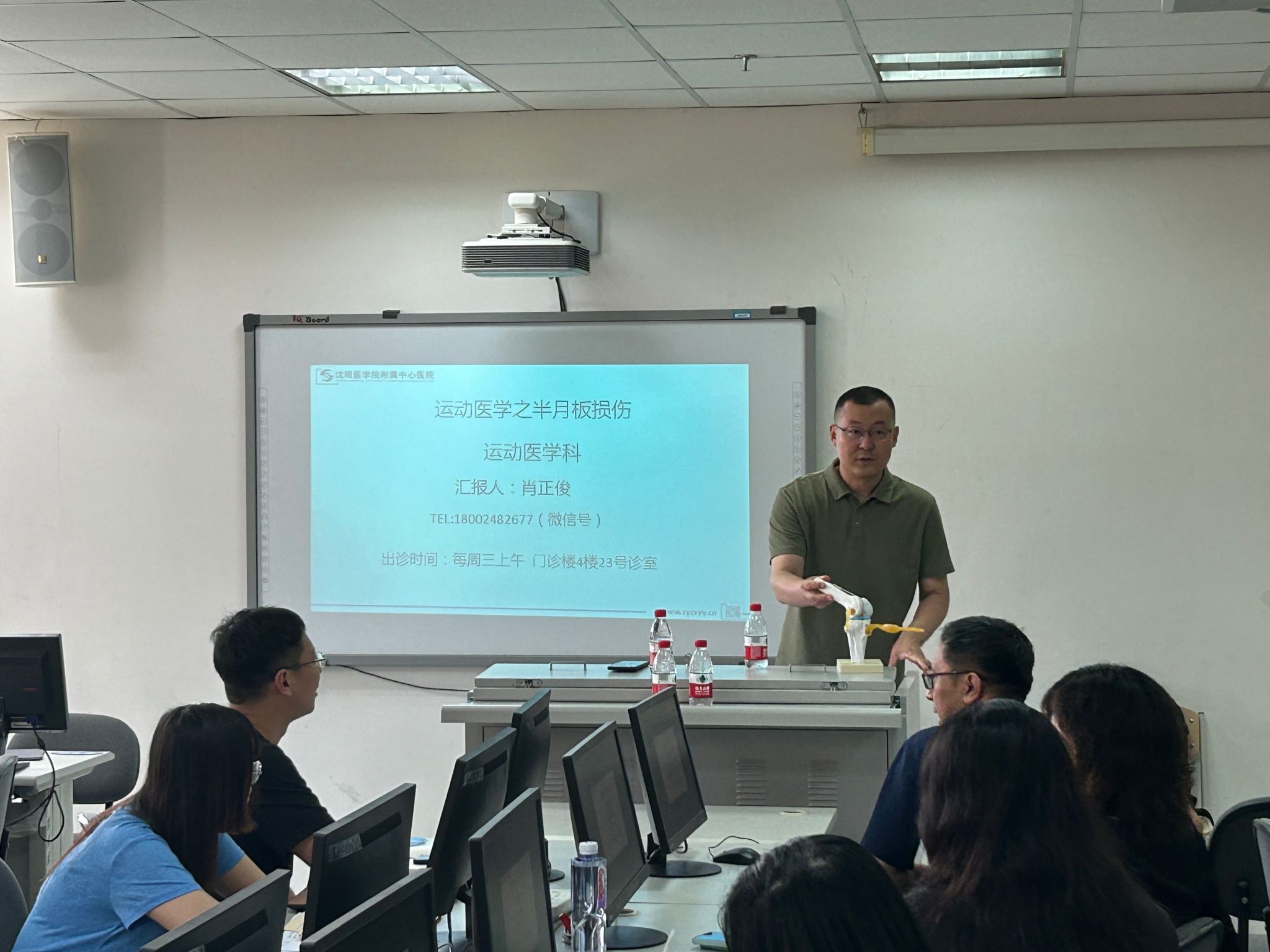 本次讲座主题为半月板损伤诊治学院全体教职工到场聆听了此次讲座,现场气氛热烈。半月板损伤是运动爱好者和日常活动中极为常见的膝关节伤病,严重影响运动表现和生活质量。然而,公众对其成因、症状、治疗选择及康复过程往往存在诸多误解和困惑。针对这一需求,肖正俊医生凭借其在运动医学领域深厚的理论功底和丰富的临床经验,为在场教职工带来了一场内容翔实、深入浅出的科普盛宴。
