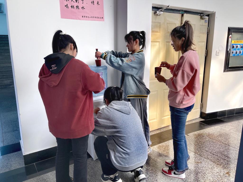 成人短视频 党总支部继续开展“我为师生办实事”实践活动,切实将党史学习教育成果转化为“我为师生办实事”的工作动力和具体成效,不断提升师生的幸福感和满意度。寒冷的冬季即将到来,成人短视频 党总支部在第一教学楼设立“爱心饮水站”,为在教学楼内上课的师生提供热水、咖啡。此后,还将陆续在第二教学楼、图书馆等地点设立饮水站。