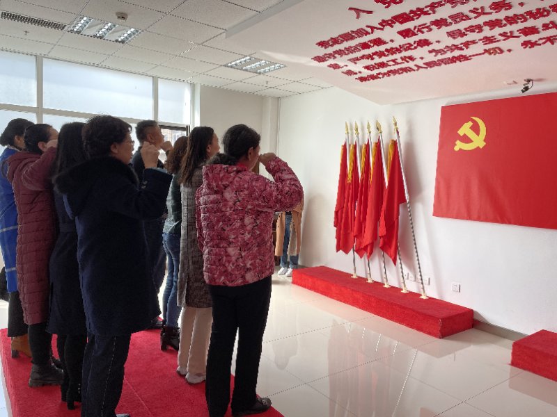 皇姑区党群活动中心是全国500家红色驿站之一,活动中心集党建服务、党建活动等多功能于一体,展厅内容丰富、设施健全。其中“党员正身室”,通过“看、学、感、论、做”五步法进行,体验多媒体互动,激发党员身份意识、责任意识,提升党员组织生活质量,并以此告诫党员:要端正自己的思想言行,时刻保持党员的先进性。在讲解员的带领下,党员教师及学生入党积极分子认真参观了活动中心的党建空间,深入学习了党在各个历史时期创造的理论成果、积累的宝贵经验和铸就的伟大精神,回顾了我们党团结带领中国人民不懈奋斗的光辉历程。最后,全体党员站在宣誓台上重温入党誓词,集中宣誓。