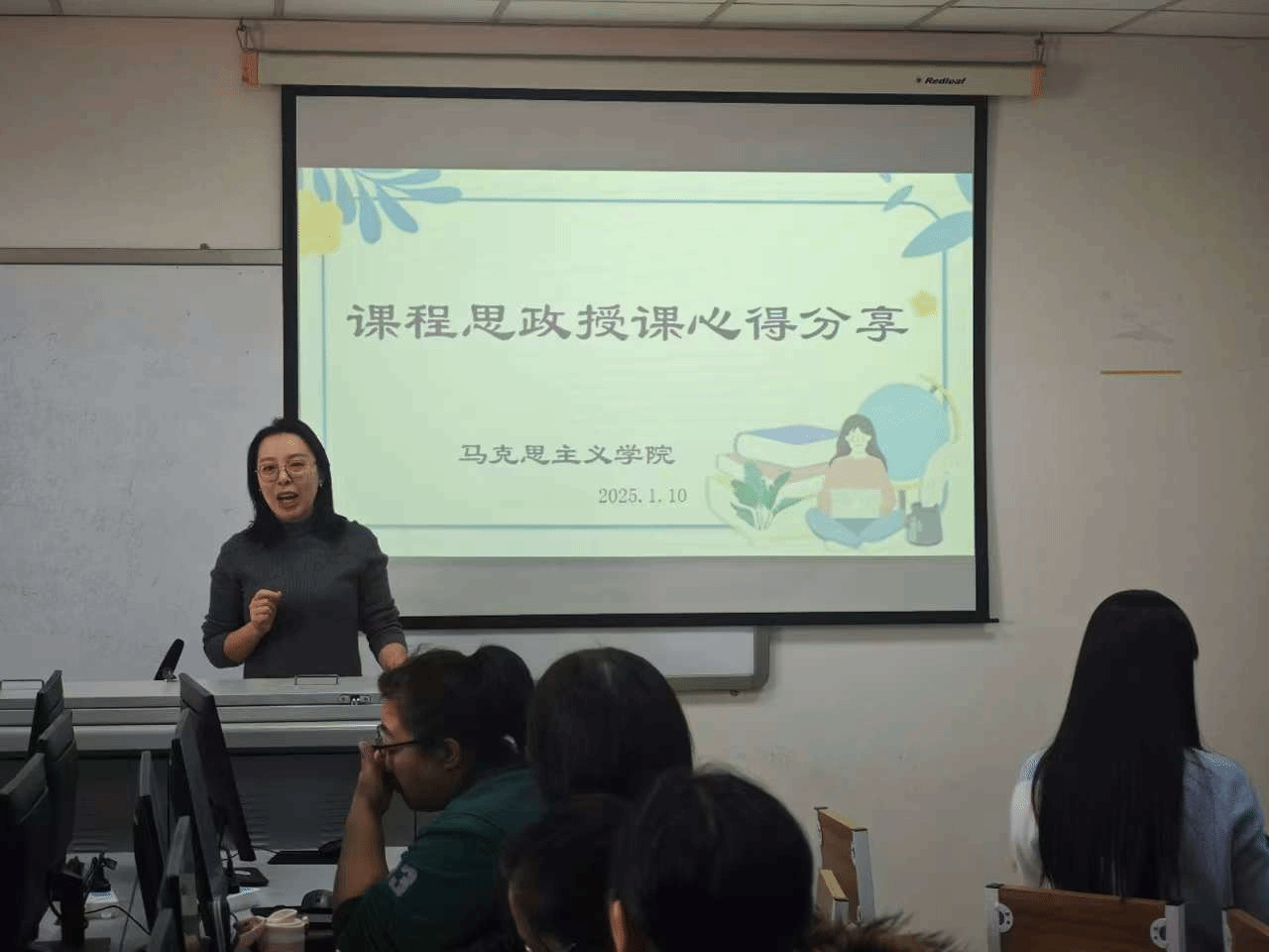 在博学楼B520教室举办了课程思政授课心得分享会。此次会议邀请了马克思学院优秀教师任潇老师分享了课程思政授课心得。
