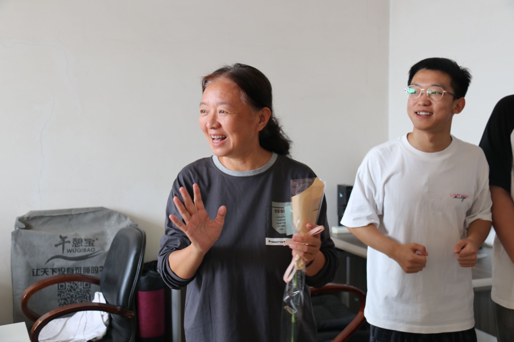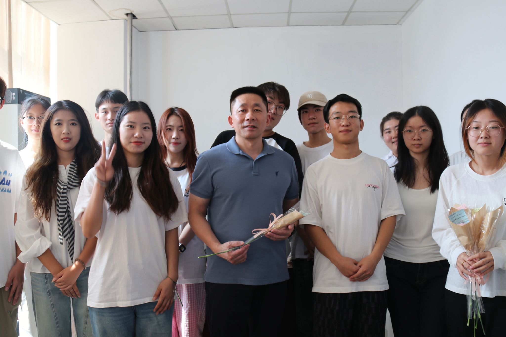 活动当天,在学院团总支书记的带领下,学生会成员自发分组,带着满含心意的鲜花,前往教学楼、教师办公室等场所。他们默契配合,轻声行动,只为给老师送上“不期而遇的温暖”。每当有老师出现,学生们便主动上前,双手递上鲜花,轻声道一句“老师,节日快乐!”。突如其来的惊喜让老师们倍感温暖,不少老师停下脚步与学生亲切交谈,分享此刻的感动,办公室里满是欢声笑语。