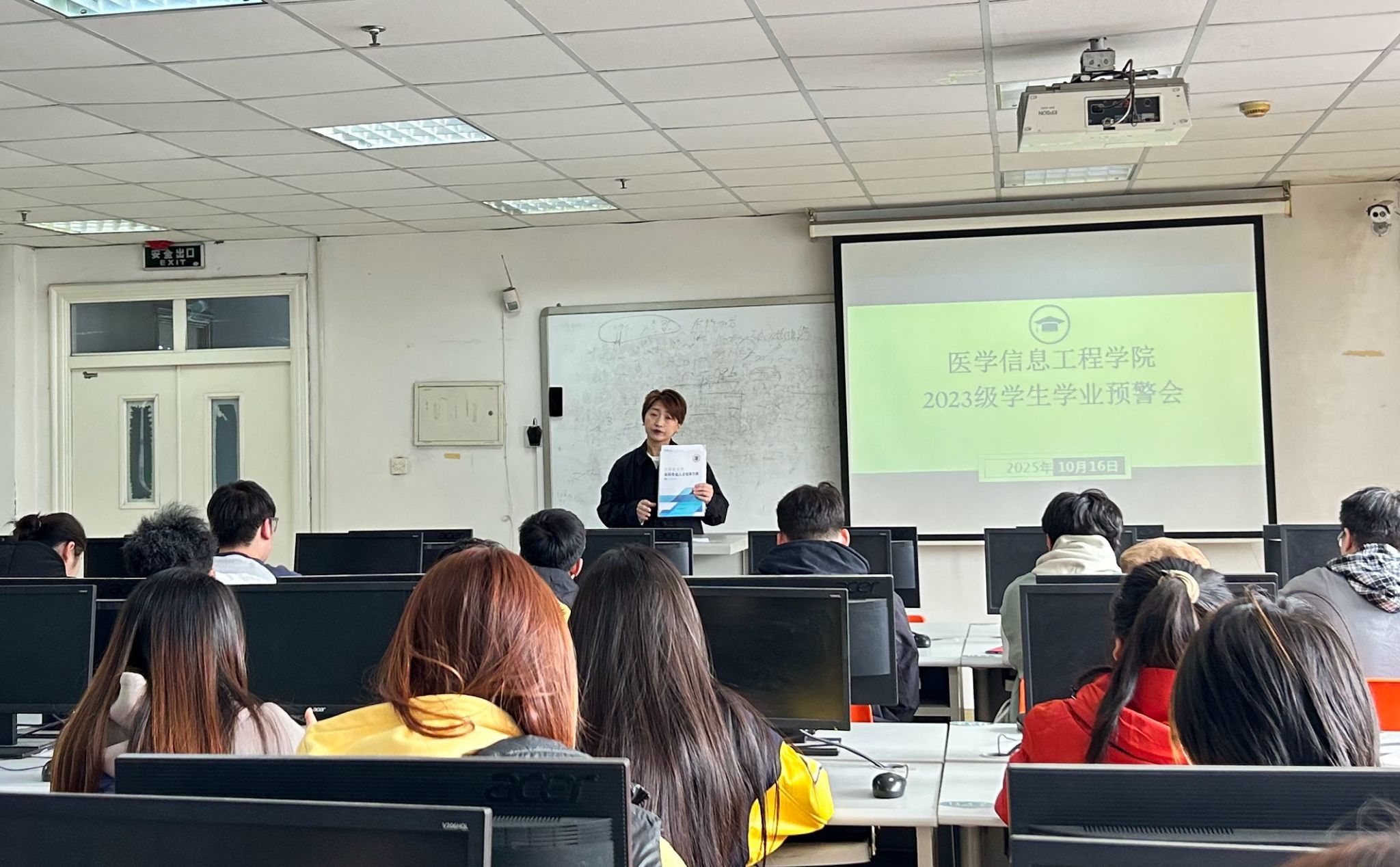 2025年10月16日,学院面向2023级医学信息工程专业(1班、2班)及大数据管理与应用专业1班召开学业预警会议。当前,同学们已步入大学三年级的关键时期,距离毕业仅余一年半左右。本次会议旨在帮助学生系统梳理学业要点,提前应对毕业阶段可能面临的课程学习、实践衔接与就业准备三方面挑战。