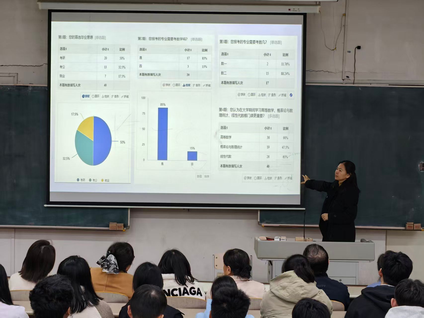 曹意唱、李红梅老师进行专题辅导。曹意唱老师系统讲解考研路径,并邀请2025届毕业生荣金雪分享考研上岸经验;李红梅老师则针对高等数学等核心课程,解析学习方法与重难点,夯实学生学业基础。
