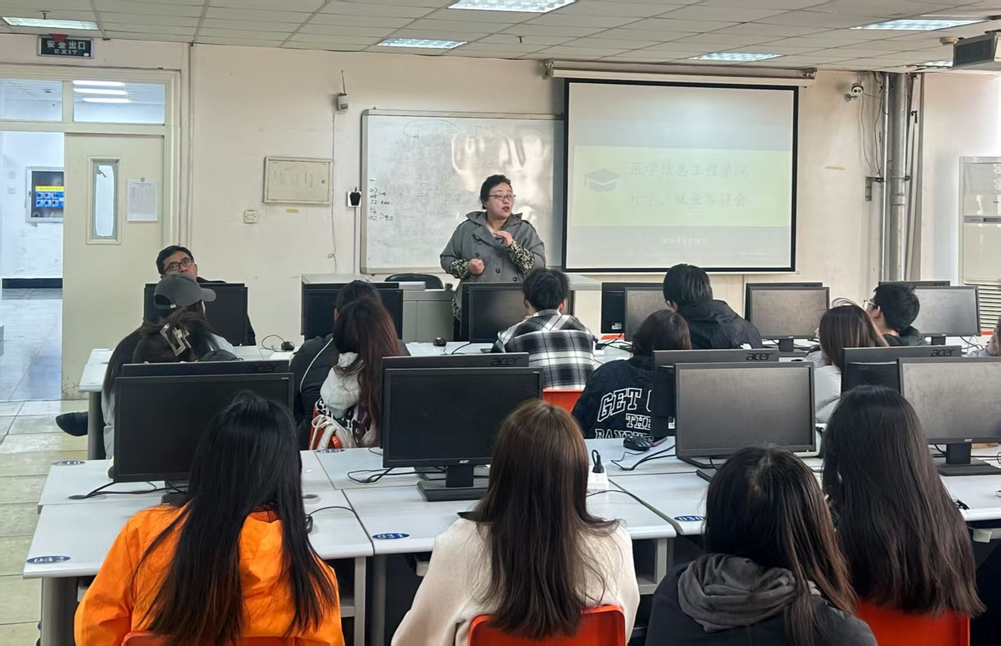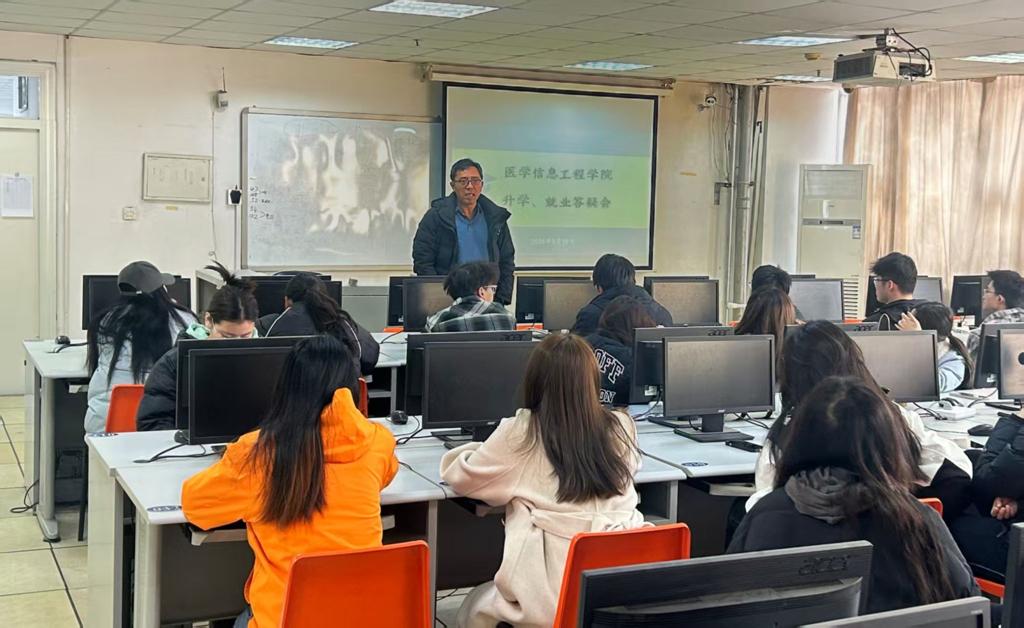 大三下学期是学生明确发展方向、做好未来规划的重要阶段,为帮助学子明晰升学与就业方向,学院高度重视本次答疑工作,由院长亲自讲解,联合各教研室骨干教师,结合专业特点为不同发展需求的学生精准答疑解惑。 会上,院长围绕医学信息工程、大数据管理与应用专业优势,提醒同学们结合自身情况合理选择,详细分析了考研、考公的适配人群,并为大家提供了考研方向;副院长鼓励大家及早规划、提升学历,紧跟时代发展需求;专业教师就升学、考公、就业相关注意事项进行细致讲解。同学们认真聆听、积极提问,现场互动氛围热烈。